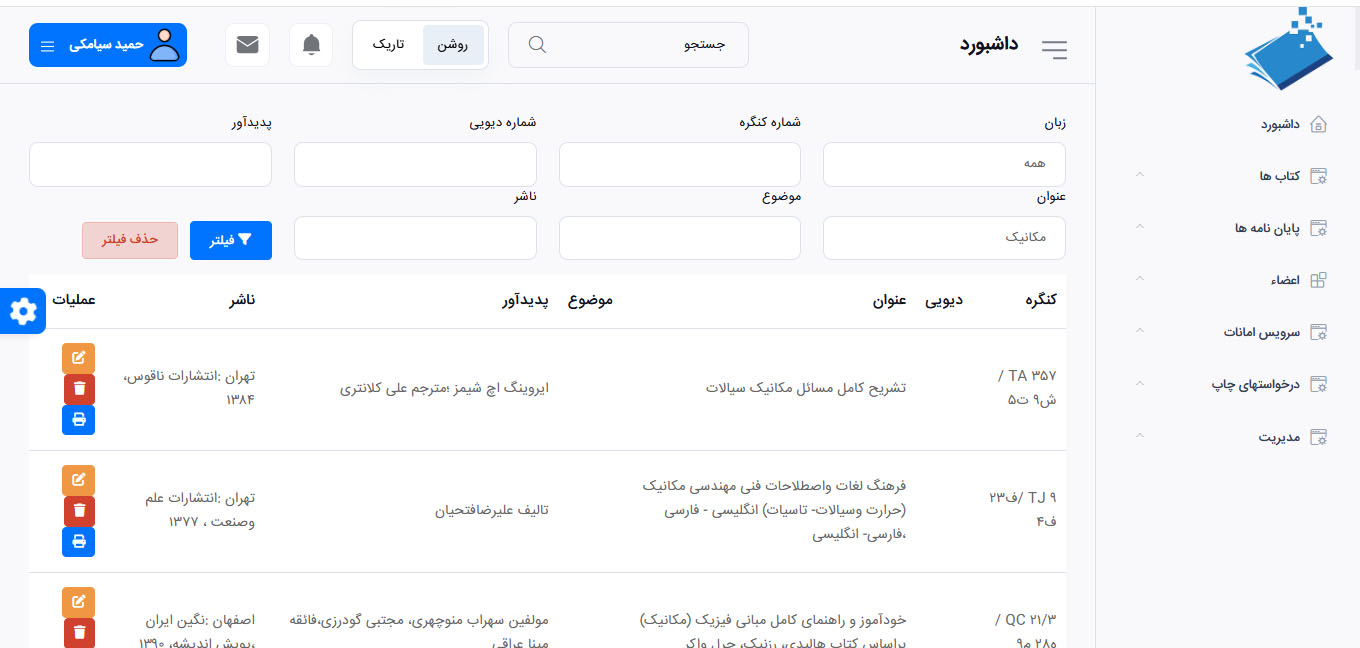 📚 مدیریت کتاب‌ها و پایان نامه ها